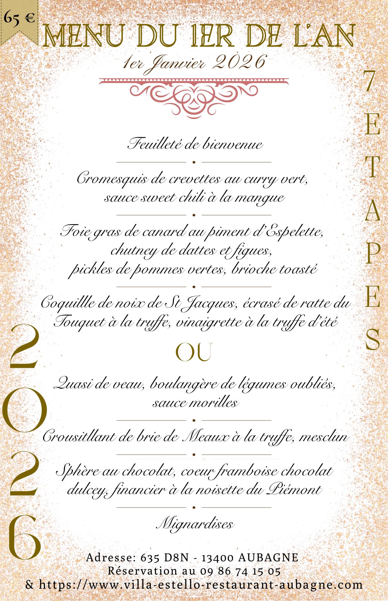 L'équipe de la Villa Estello vous propose dès à présent ses menu du nouvel an ainsi que son menu du 1er de l'an !
